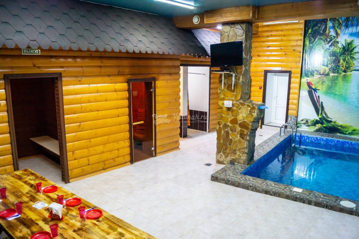 Отдыхали семьями, вчетвером. Очень достойная сауна! Причем мужчины наши очень требовательны именно к банному ритуалу, но даже они остались весьма довольны. Огромный плюс - комната отдыха: уютная, чистая, приятно чаю попить и поболтать. Бассейн хоть и маленький, но неплохой. В общем, рекомендую, особенно для семейного отдыха в целях оздоровления и приятного досуга.