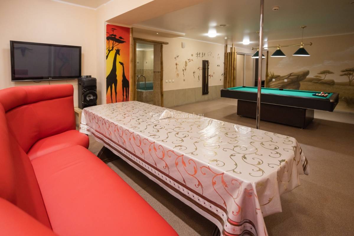 У нас имеется целый банный комплекс. Пять комфортабельных залов «Сафари», «Япония», «Рыбалка», «Египет», «Свояк» - Вы можете выбрать любой. Вместимость сауны такова, что не будет никаких проблем, если Вы придёте со своей компанией, в обществе которой Вам будет хорошо, уютно и приятно.